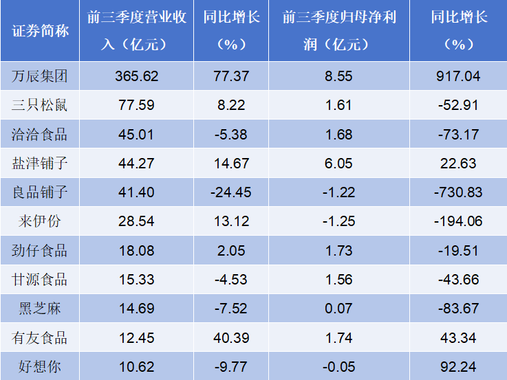 今年前三季度,国内零食企业呈现出“冰火两重天”的业绩格局。